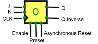 The JK Flip Flop circuit element, an improvement of a SR Flip Flop, includes two inputs J and K along with the clock (refer Figure 4.7). As Table 4.16 (the truth table for a JK flip flop) explains, if the inputs J and K are different, then the output Q takes the value of the input J at the next clock edge.